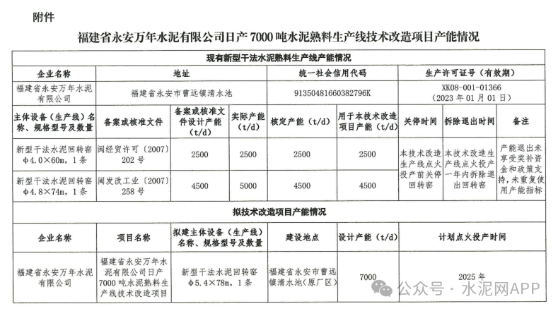 9月5日,福建省工信廳發(fā)布“關(guān)于撤銷(xiāo)福建省永安萬(wàn)年水泥有限公司日產(chǎn)7000噸水泥熟料生產(chǎn)線技術(shù)改造項(xiàng)目方案的公告”。